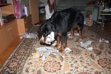 Auspacken ist sehr lustig. Ich muss ja die Papierschnitzel nicht wegräumen.